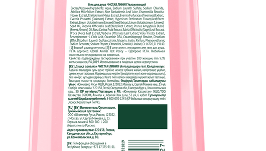 Чистая Линия Гель для душа Увлажняющий пион и алоэ, 250 мл