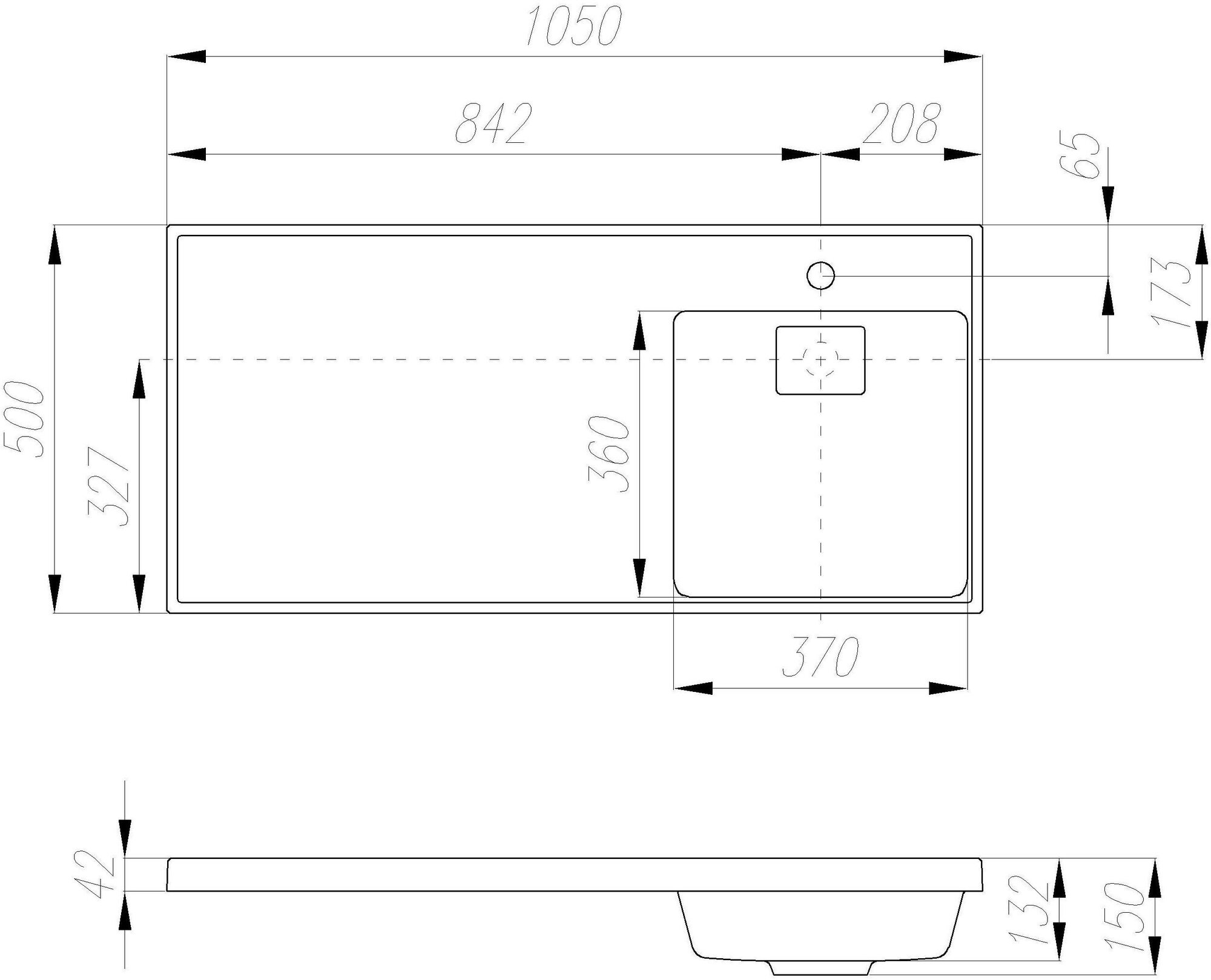 | Расположение отверстия под смеситель | в центре |