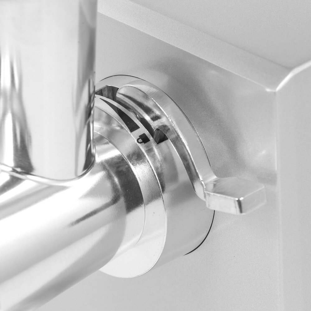 | Плюсы: | Высокая производительность (несколько килограмм мяса переработал за 6-7 минут), большой лоток для подачи мяса, металлическое крепление шнека к корпусу |