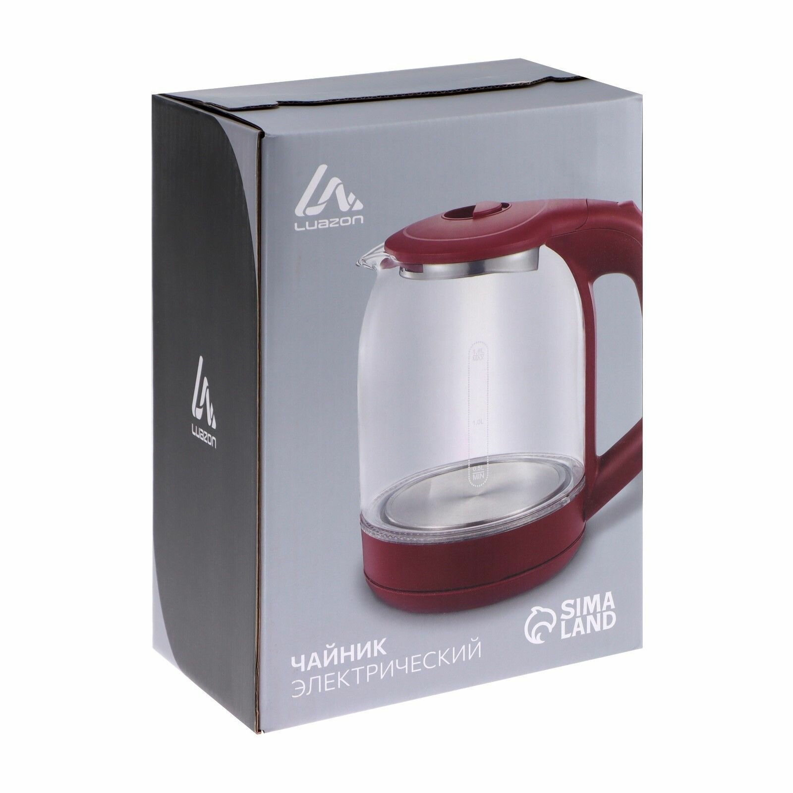 Чайник электрический Luazon Home LSK-1809, стекло, 1,8 л, 1500 Вт, подсветка, красный