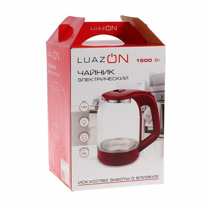 Электрические чайники Luazon Home Чайник электрический LuazON LSK-1809, стекло, 1.8 л, 1500 Вт, подсветка, красный
