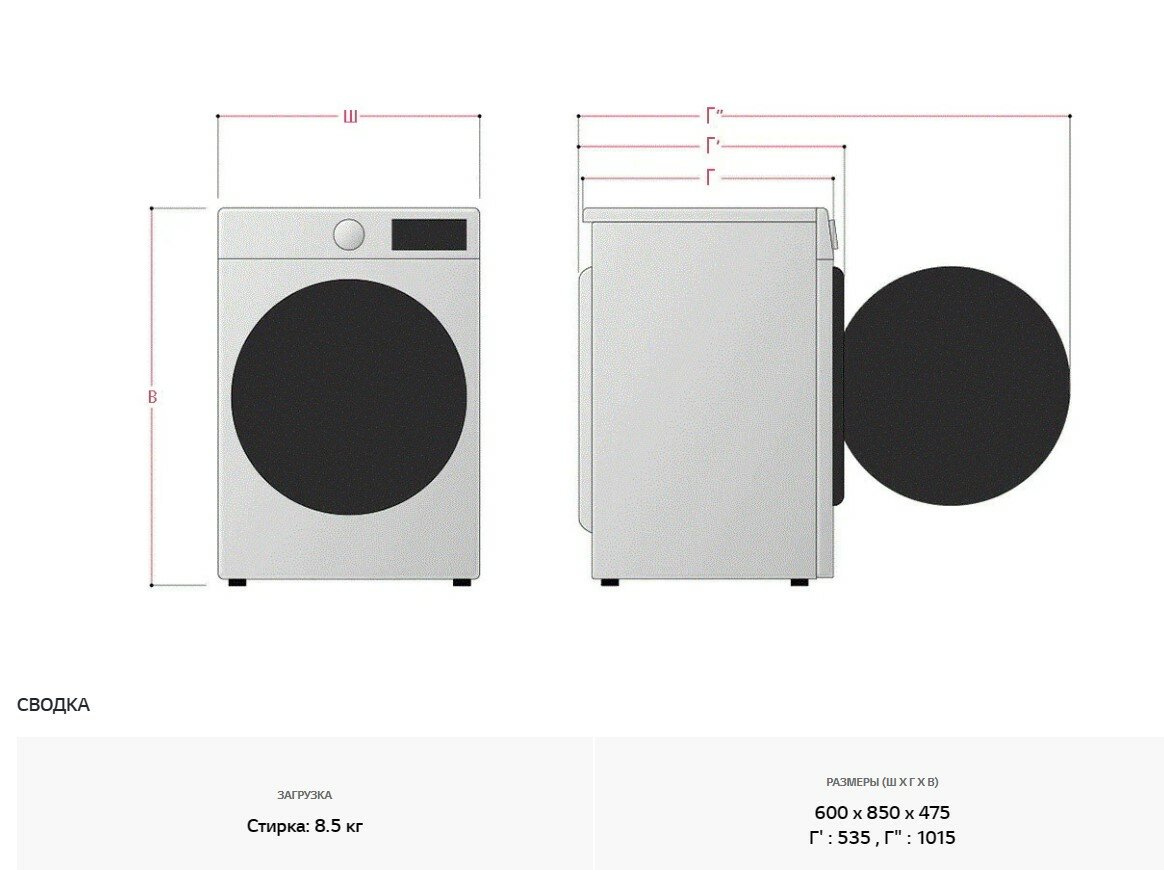 | Загрузка белья | 8 кг |