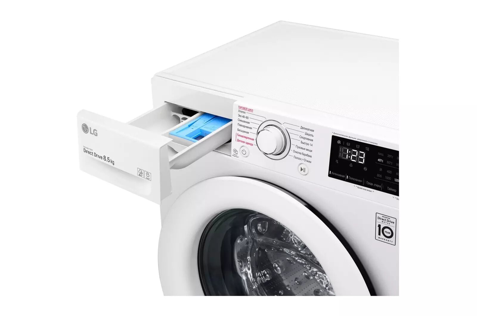 Стиральная машина фронтальная LG F2V3GS6W белый/черный (8,5 кг, диспл, дозагрузка)