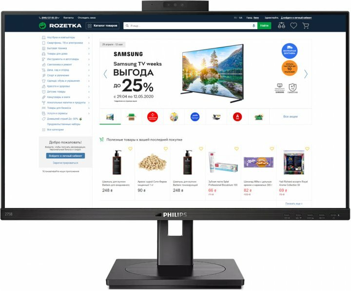 Монитор 27" Philips 275B1H/00 2560x1440 75 Гц IPS W-LED 16:9 4ms HDMI DVI DP 3*USB3.2 50M:1 178/178 300cd webcamera Windows Hello HAS Pivot Tilt Swivel Speakers Black ( 275B1H/00,дисплей ЖК, LCD, WQXGA )