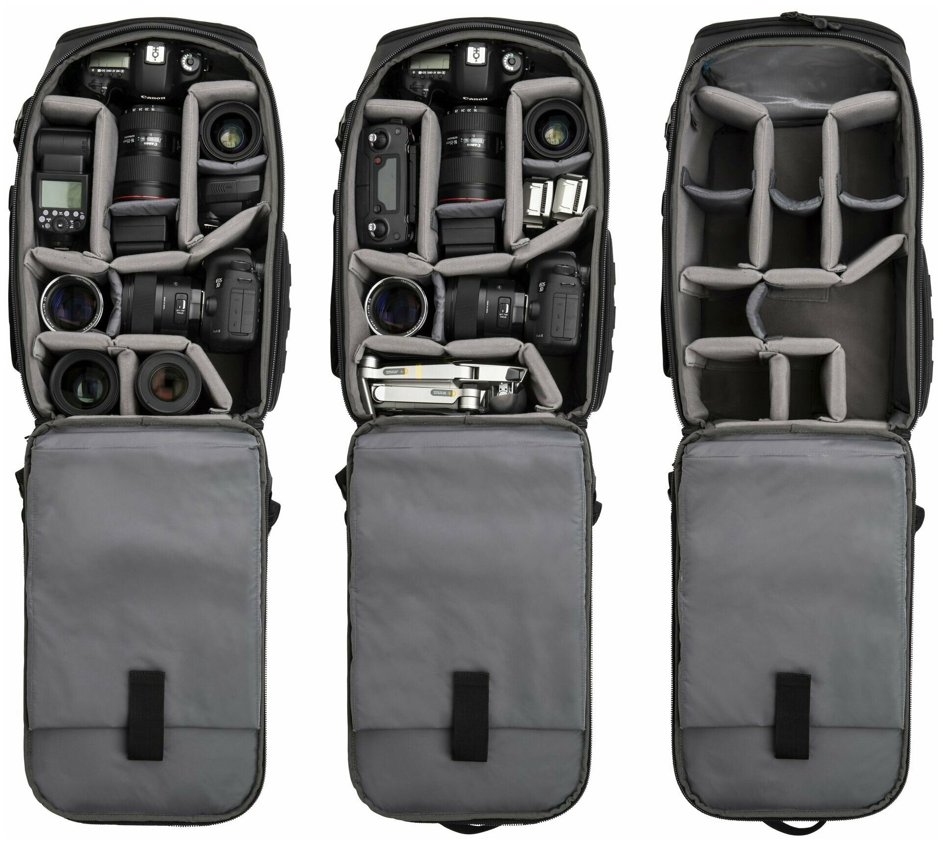 Не смог оптимально организовать с помощью перегородк место под конфигурацию Nikon D750 + Sigma 12-24 Art... |