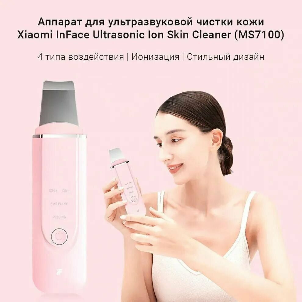 Аппарат для ультразвуковой ионный чистки кожи Xiaomi InFace MS7100 Ultrasonic ion Skin Cleaner Pink .