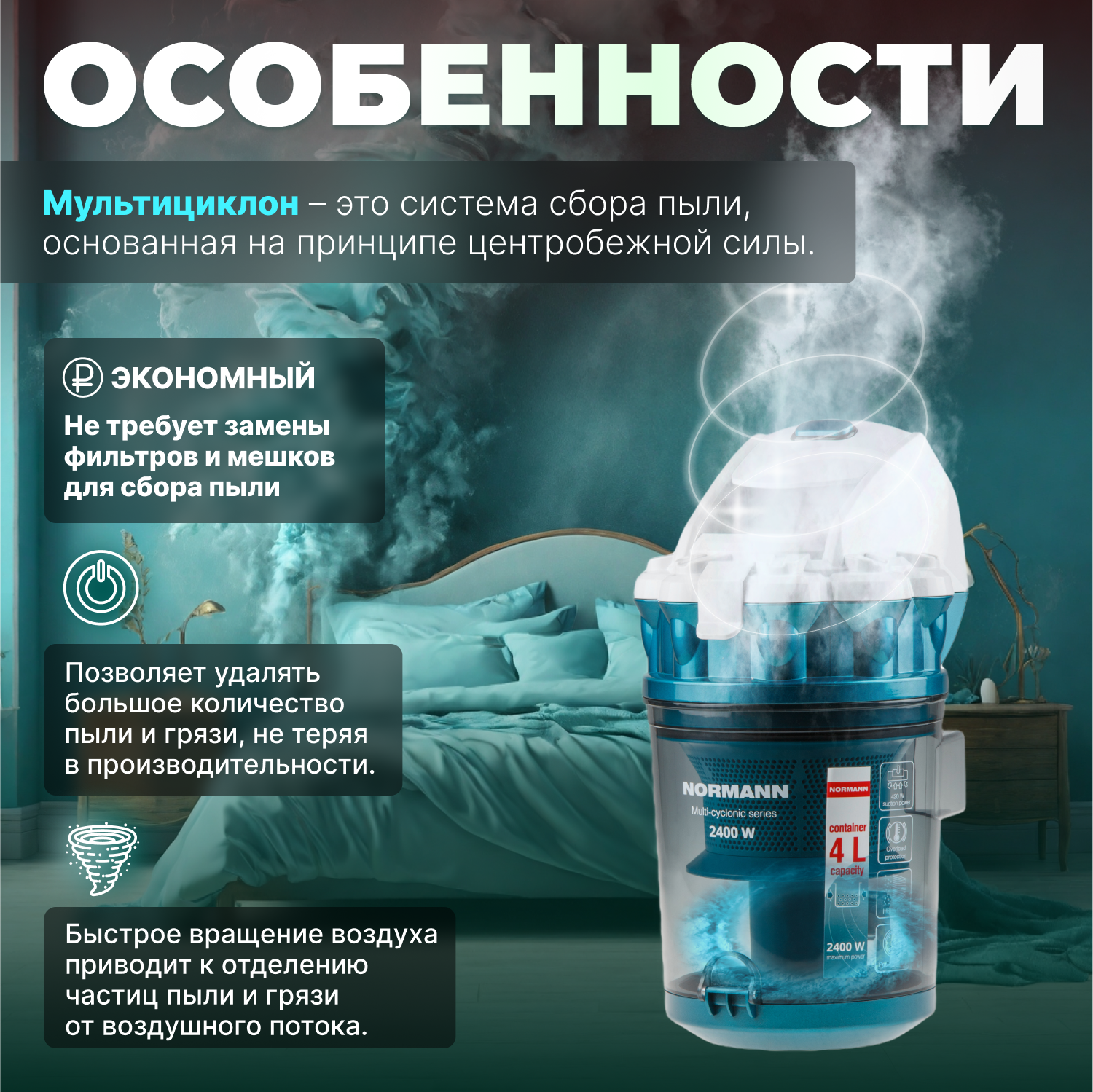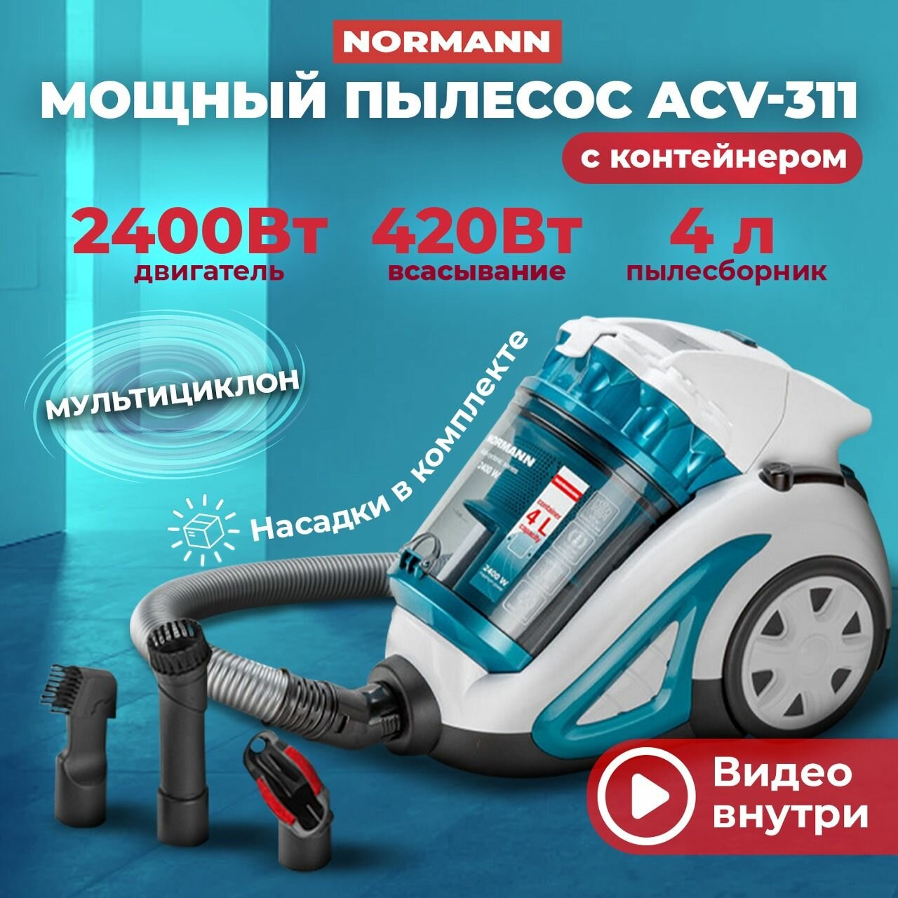 Пылесос бытовой NORMANN AVC-311 (2400 Вт, Мультициклон, Контейнер 4,0 л, Радиус действия 8 м)