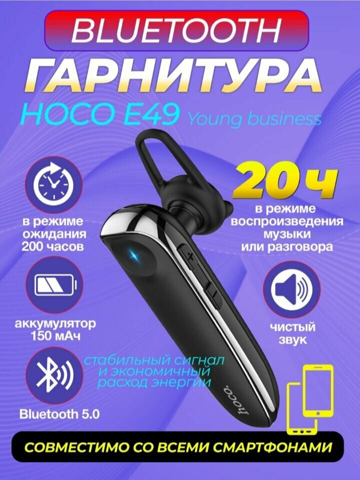 BT гарнитура Hoco, E49 (универсальная для всех телефонов), черный