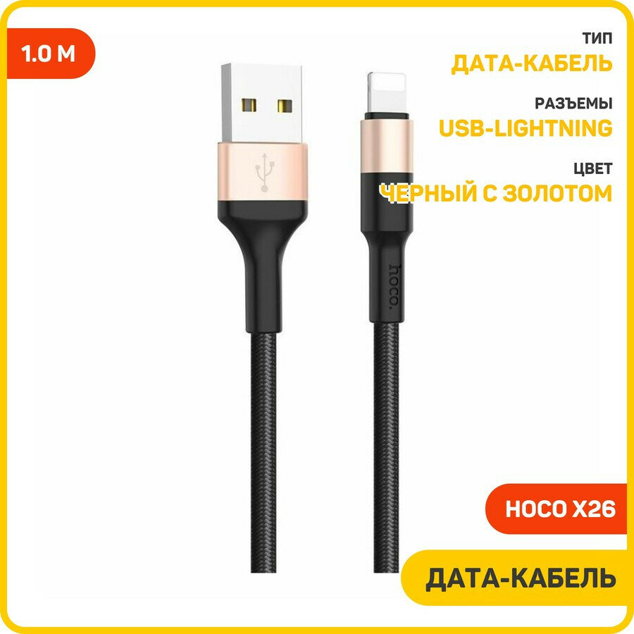 Дата-кабель Hoco X26 USB-Lightning, 1 м, черный с золотом