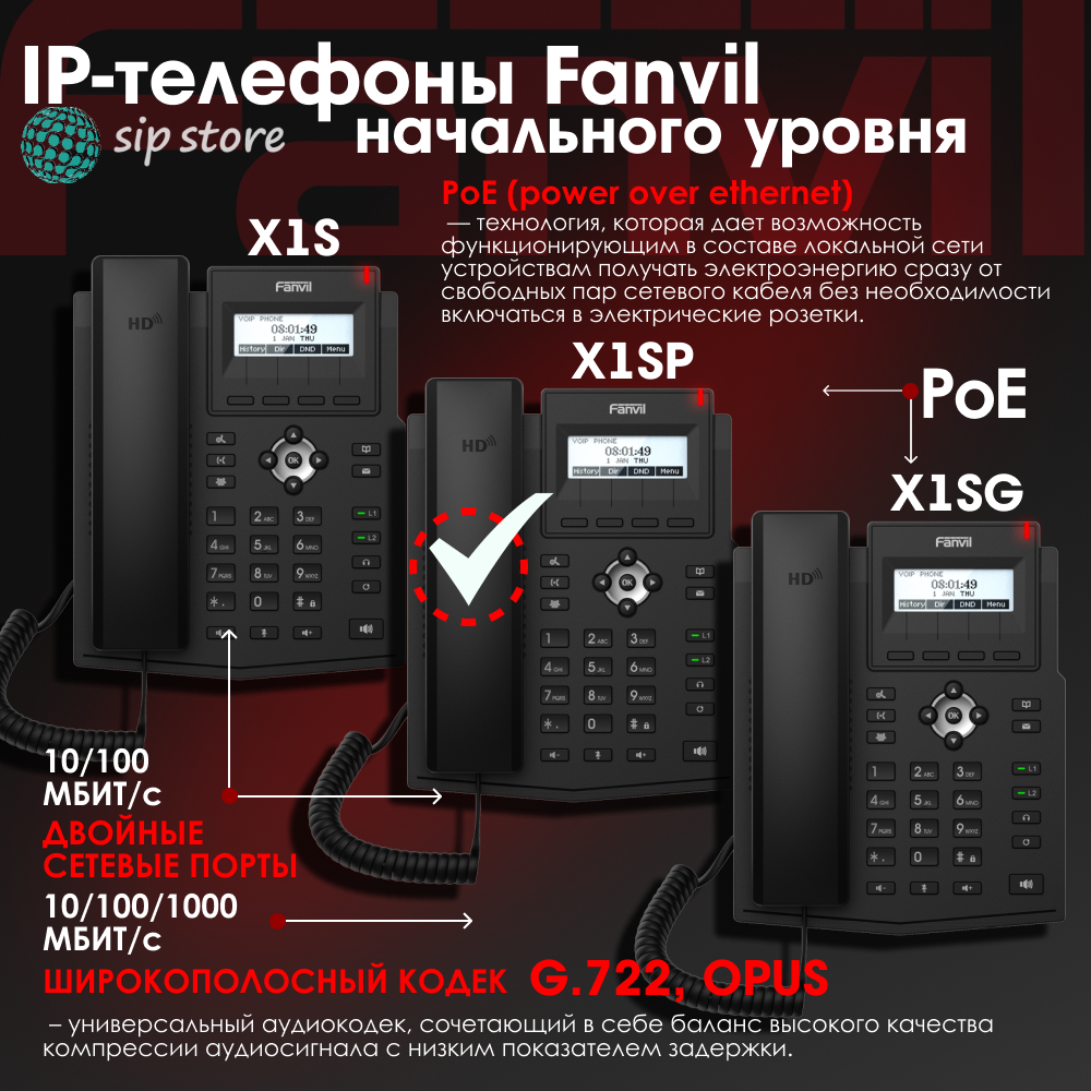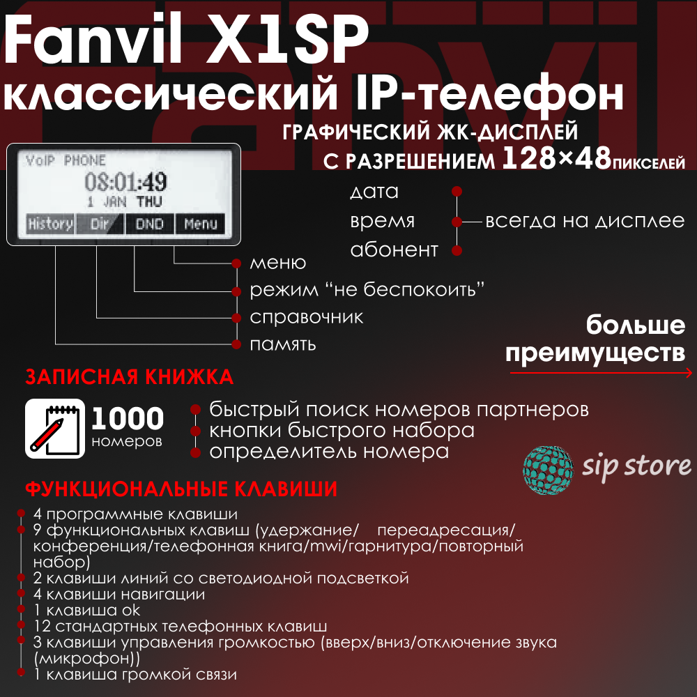 Fanvil X1SP - IP телефон c бп, POE, 2 аккаунта SIP, G722, Opus, Ipv-6, порт для гарнитуры