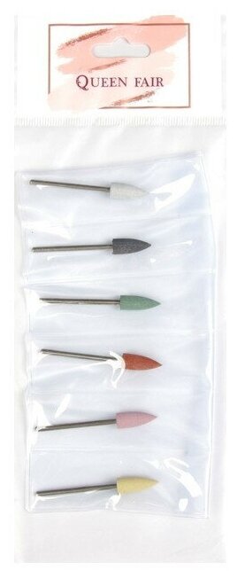 Queen fair Фрезы силиконовые для полировки, 6 шт, d 6 мм, разноцветные