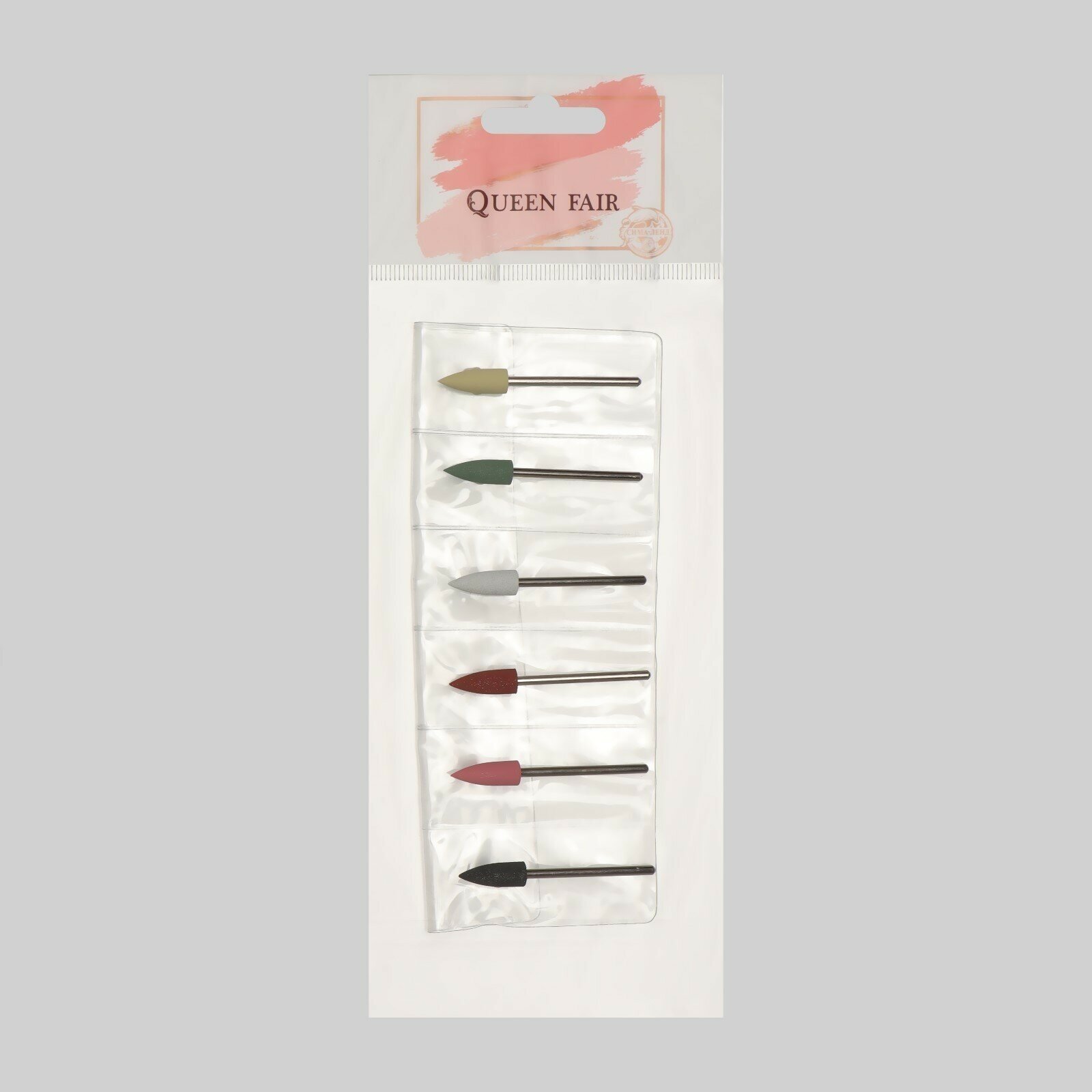 Queen fair Фрезы силиконовые для полировки, в чехле, 6 шт, d = 6 мм, разноцветные