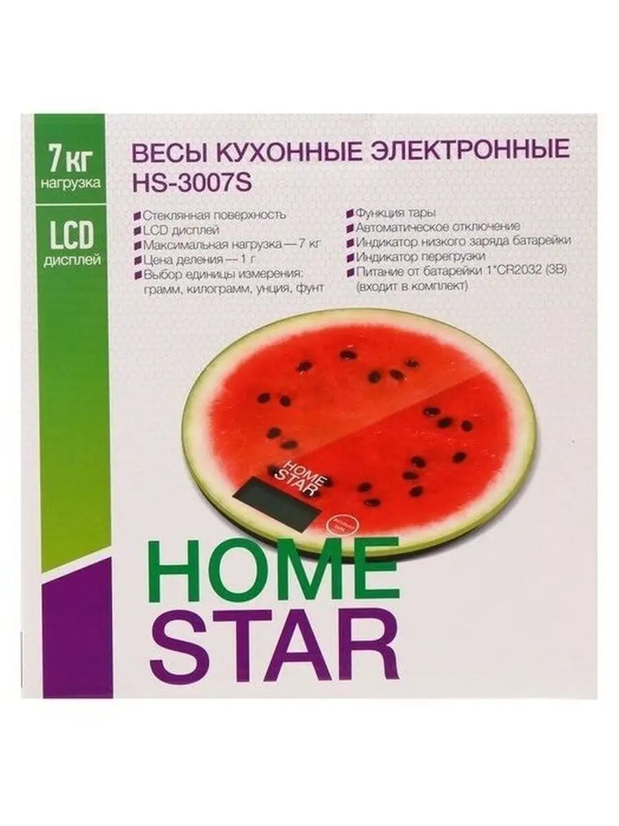 Весы Кухонные Электронные "Homestar" Hs-3007S До 7 Кг (Дизайн-Арбуз) (1/20) 217150/1