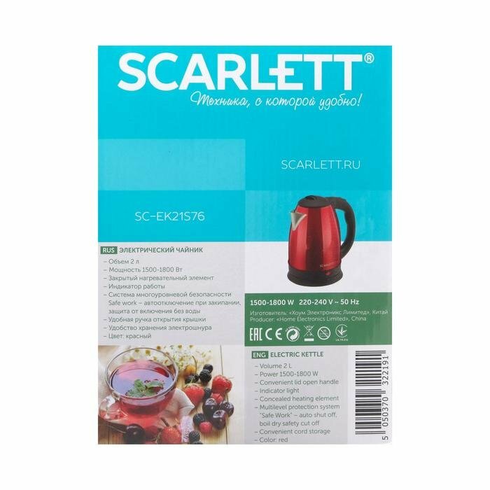 Scarlett SC-EK21S76 Чайник (красный) .