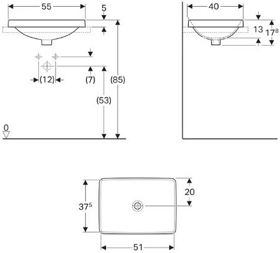 Встраиваемая сверху раковина Geberit VariForm 55х40см, арт. 500.738.01.2, санфарфор, без перелива