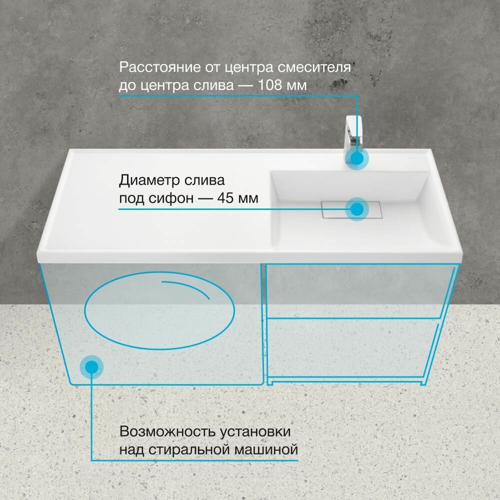 Раковина на стиральную машину Акватон Лондри 120х50см, арт. 1A72243KLH010, искусственный мрамор