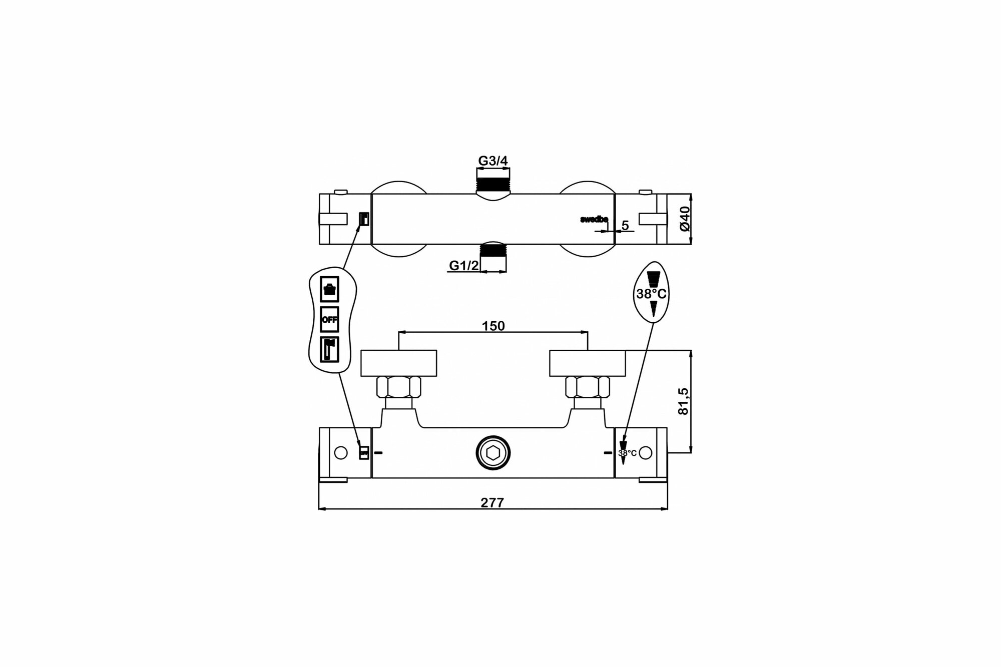 | Комплектация | термостатический смеситель нет 1 шт., эксцентрики и декоративные накладки нет 2 шт., набор креплений нет 1 шт., инструкция нет 1 шт. |