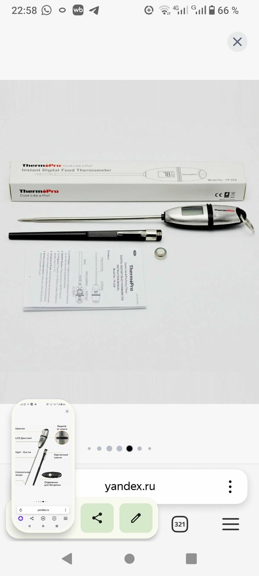 Цифровой кухонный термометр для продуктов с щупом Thermopro TP-02S интересное: