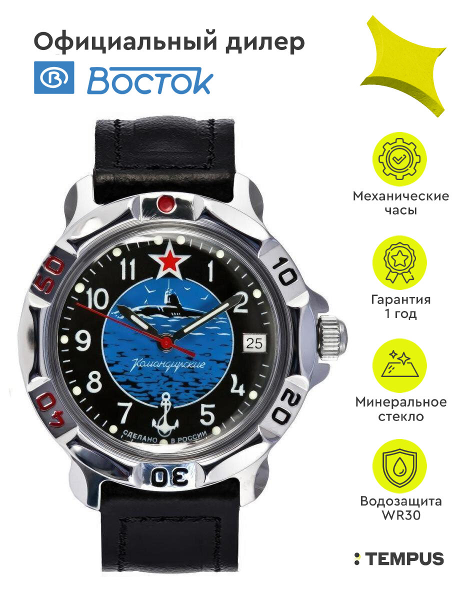 Мужские наручные часы Восток Командирские 811163-classic, натуральная кожа, черный