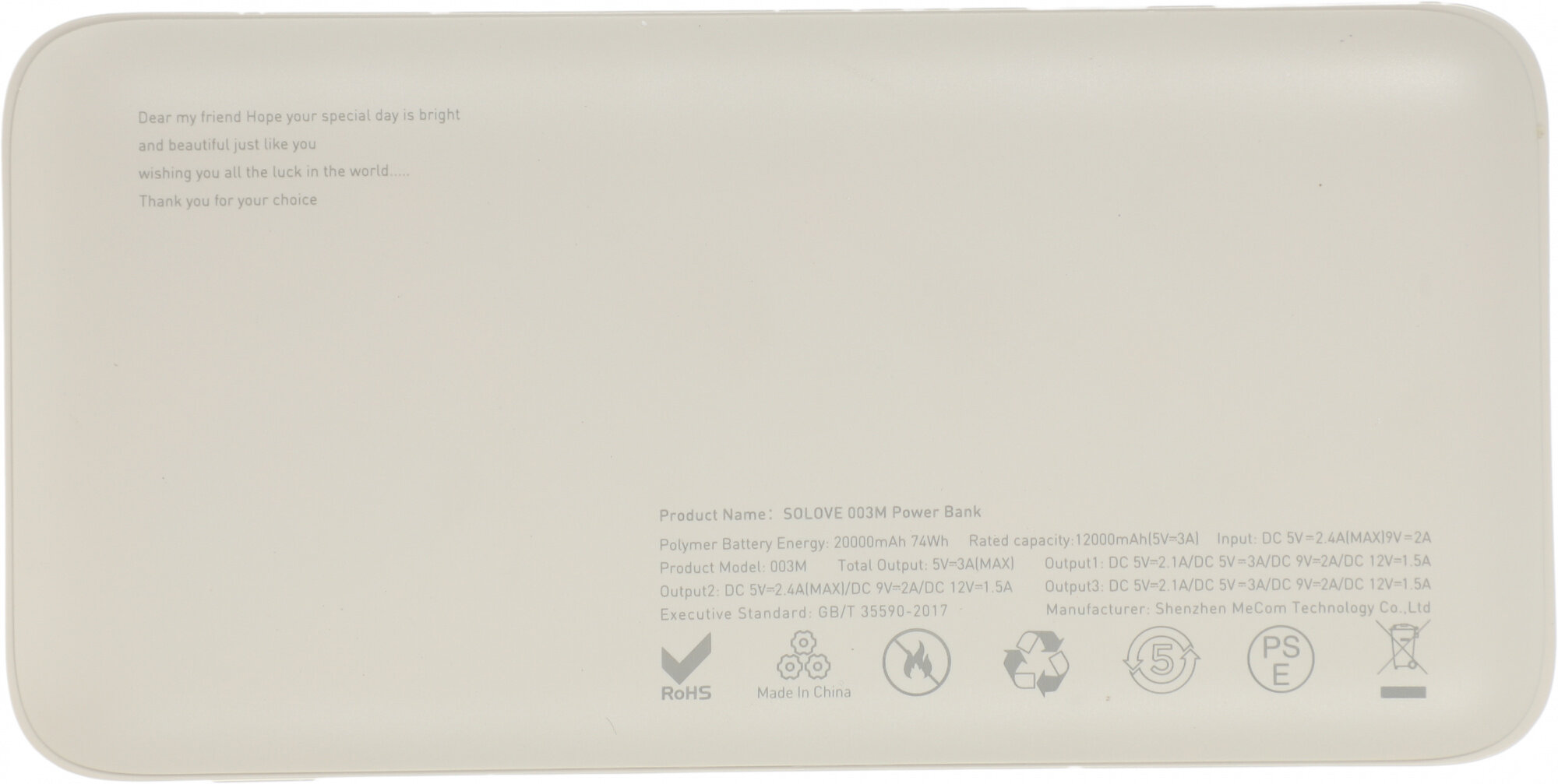 Внешний аккумулятор Solove 003M 20000mAh Beige