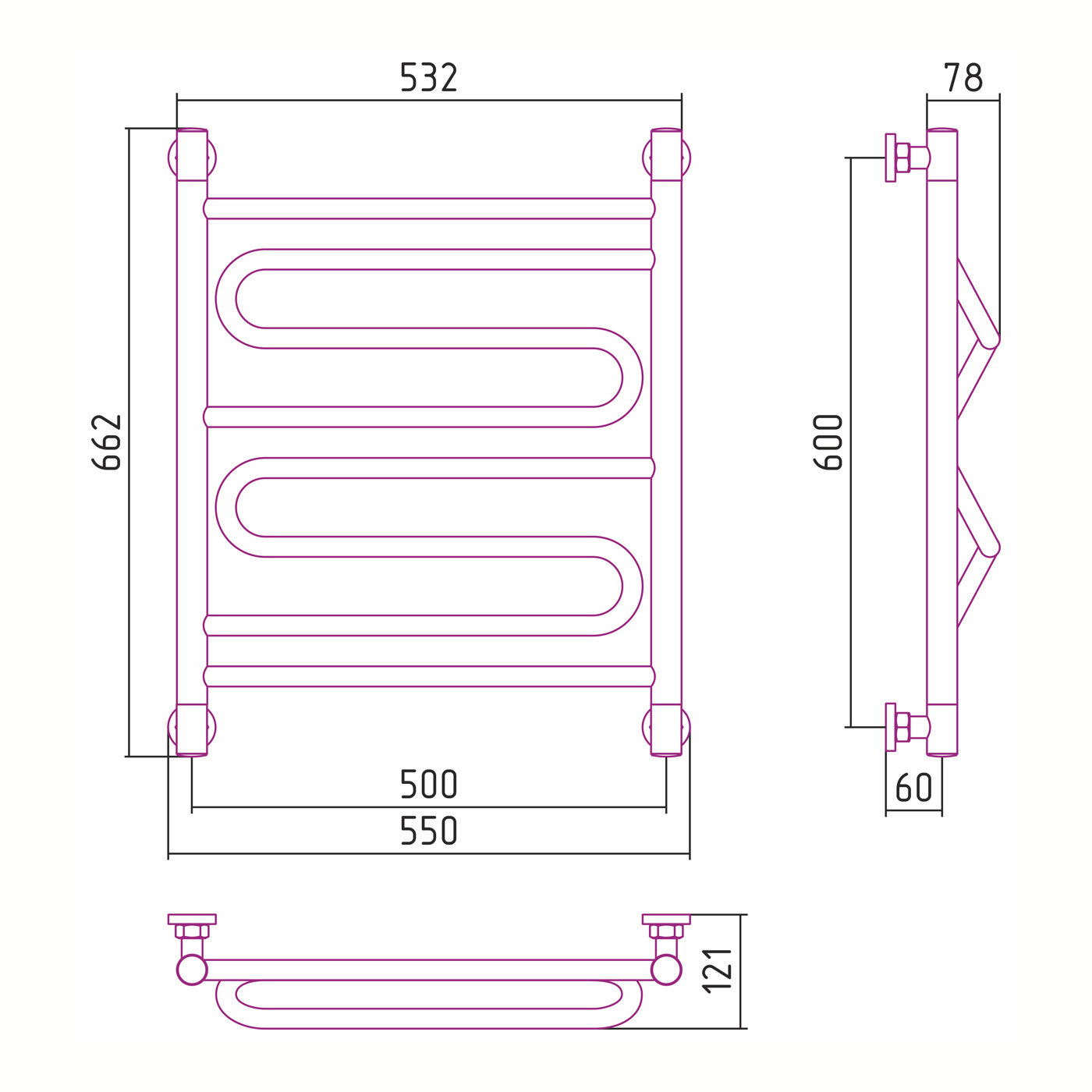 Полотенцесушитель водяной Сунержа Элегия+ 600х500 Без покрытия