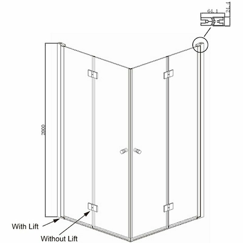 | Плюсы: | Гидрофобное покрытие, толщина стекла 6 мм, двери складываются наружу и во внутрь |