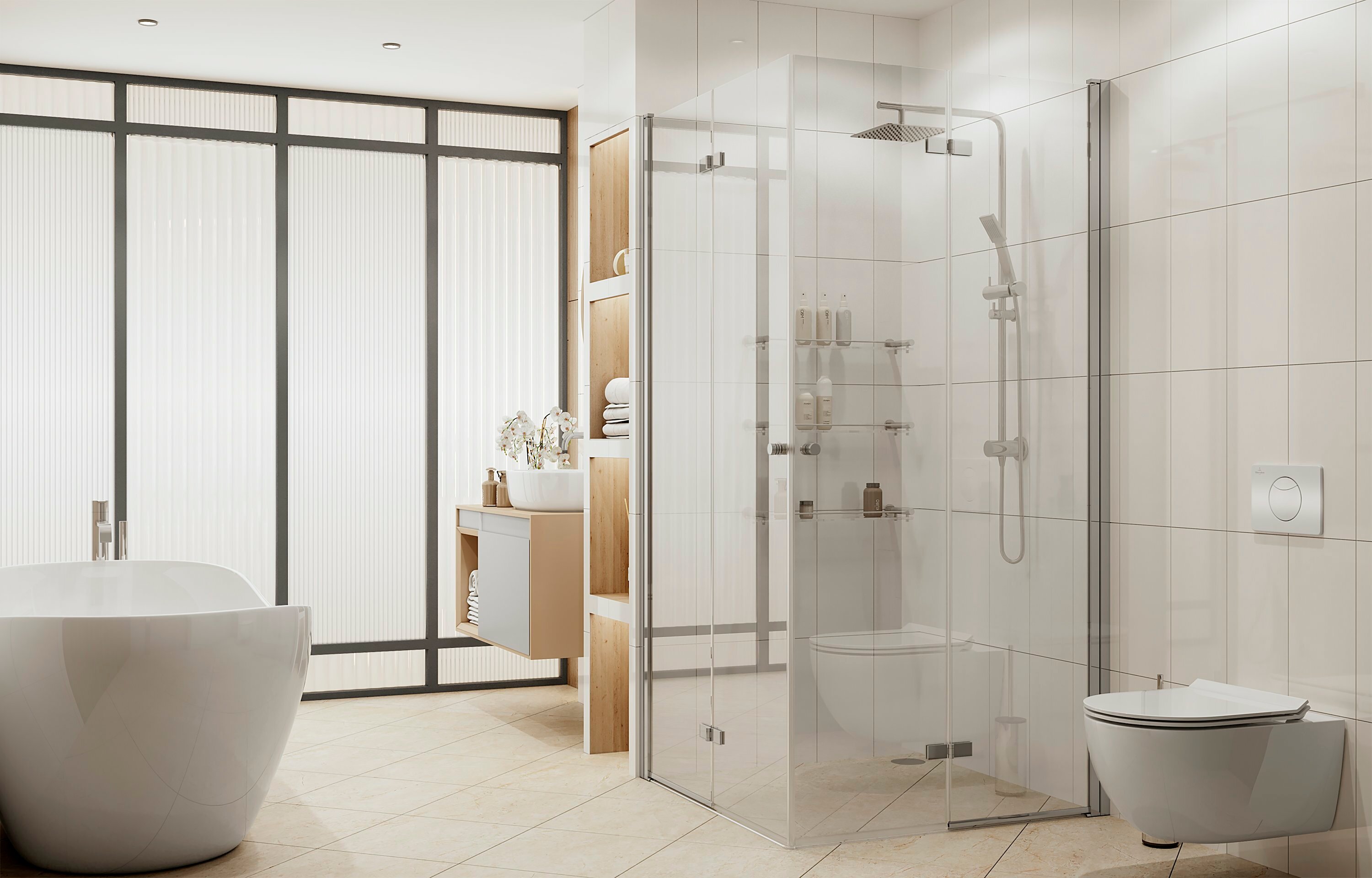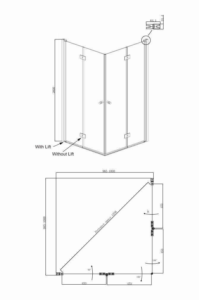 | Плюсы: | Гидрофобное покрытие, толщина стекла 6 мм, двери складываются наружу и во внутрь |