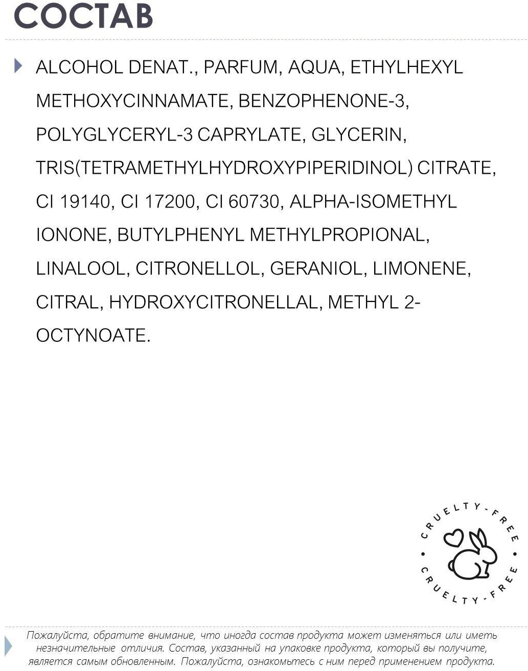 | Базовые ноты | мускус, белое дерево, маестьгаскарская ваниль |
