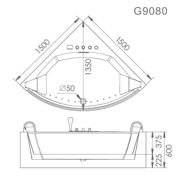 Ванна акриловая с гидромассажем Gemy 1500*1500*600 мм G9080