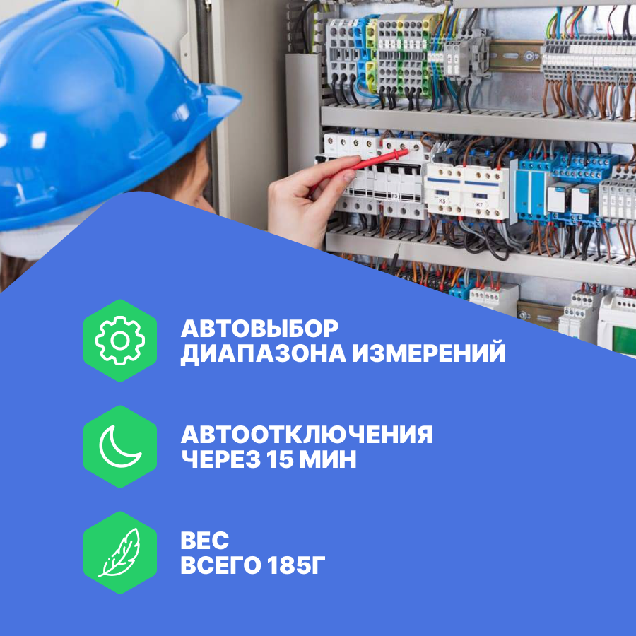 -Автоматическое определение измеряемых параметров. -Питание от 2 батареек, которые уже есть в комплекте, поэтому можно приступать к работе сразу после покупки. -Измерительные щупы надежно примыкают и фиксируются к корпусу. -Дисплей хорошо читается, можно включить подсветку. -Понятная инструкция на русском языке. |