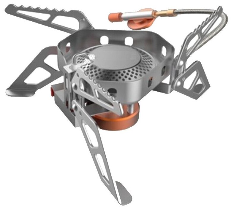 Горелка туристическая складная со шлангом Tramp TRG-046 (сталь, латунь, алюминий), серебристый/оранжевый