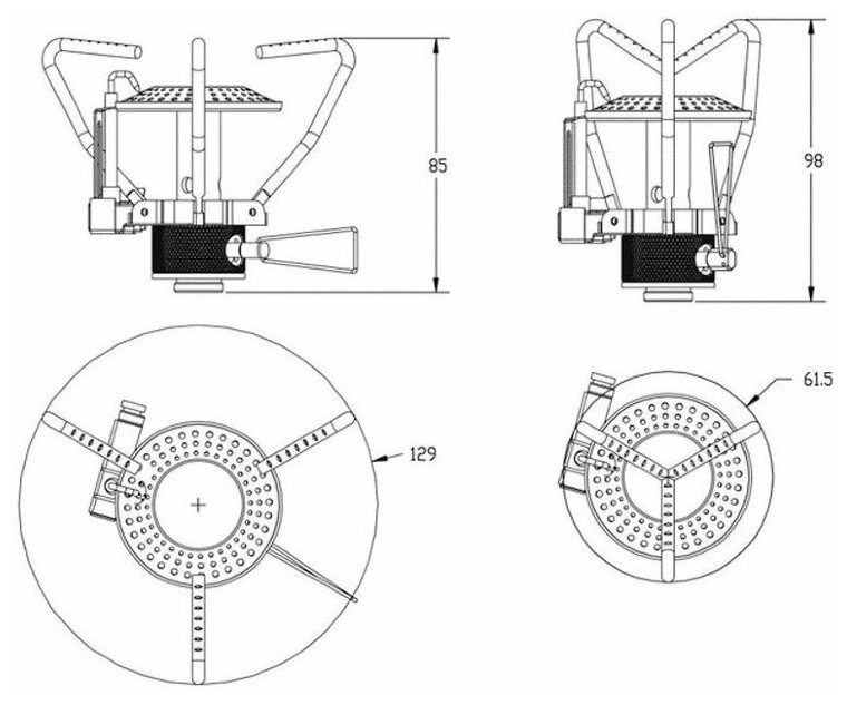 | Плюсы: | Отличная горелка, хорошо держит посуду. Вода закипает быстро |