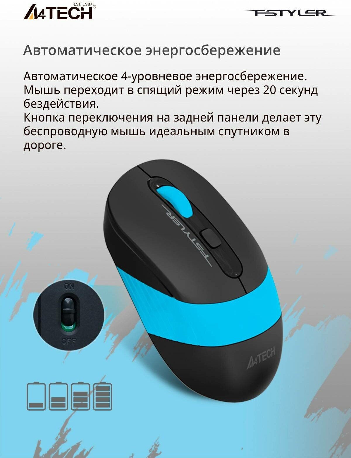 Мышь A4TECH Fstyler FG10S, оптическая, беспроводная, USB, черный и синий [fg10s blue]