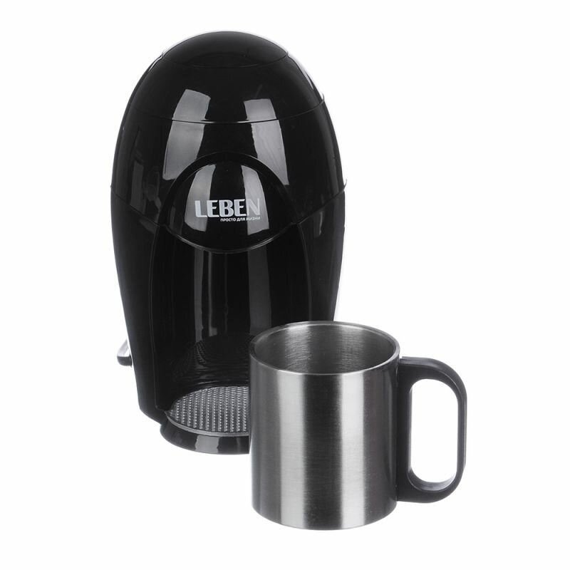LEBEN Кофеварка капельная 400Вт, на одну чашку 150мл, корпус пластик, отделка нерж