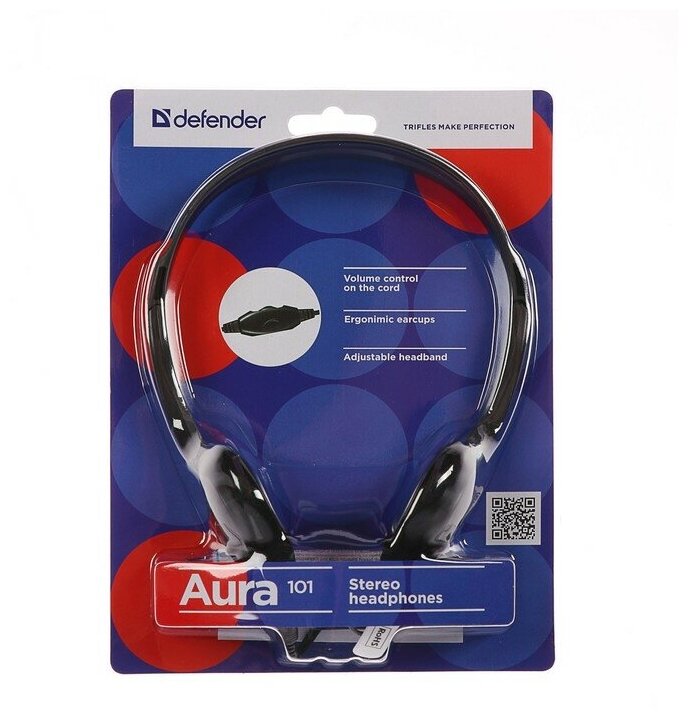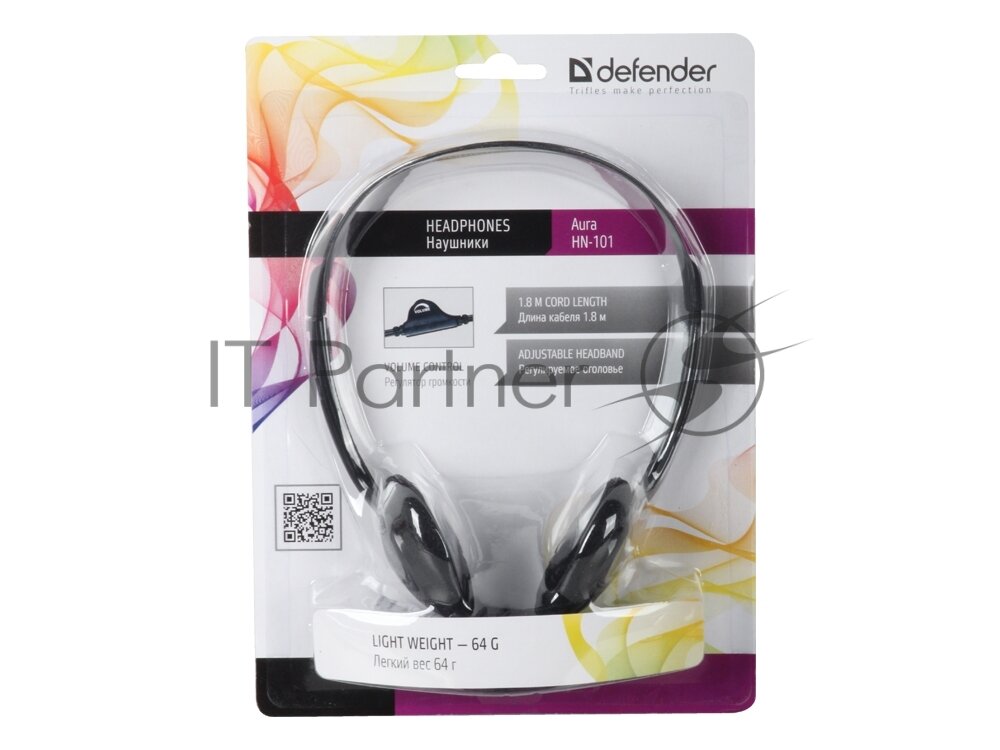 Наушники DEFENDER Aura 101, проводные, 1,8 м, накладные, черные, 63101 (арт. 511709)