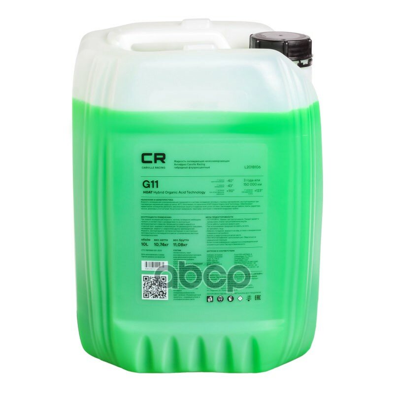 Антифриз Cr Гибридный Флуор. -40с, G11, Зеленый, Готовый, 10л/10.74кг (L2018106) Carville RacingL2018106