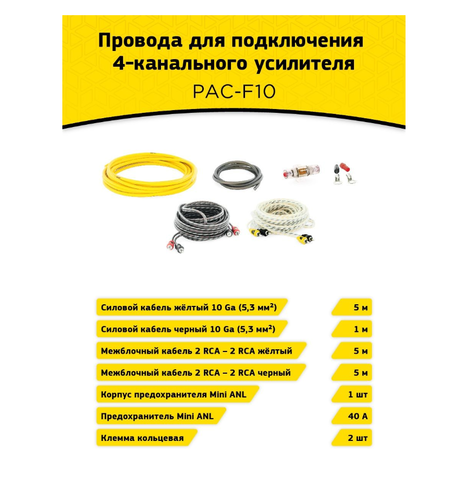 Установочный комплект проводов Swat для усилителя PAC-F10