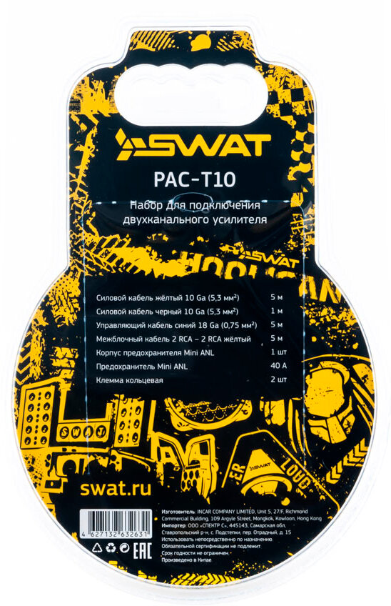 SWAT PAC-F10 /набор проводов для подкл. 4х кан. усилителя 10Ga, ССА, блистер