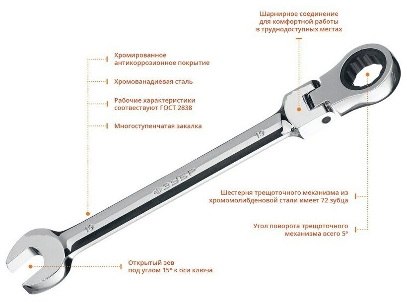 Набор комбинированных гаечных ключей трещоточных шарнирных с адаптерами, 10 шт, ЗУБР 27102-H10 интересное:
