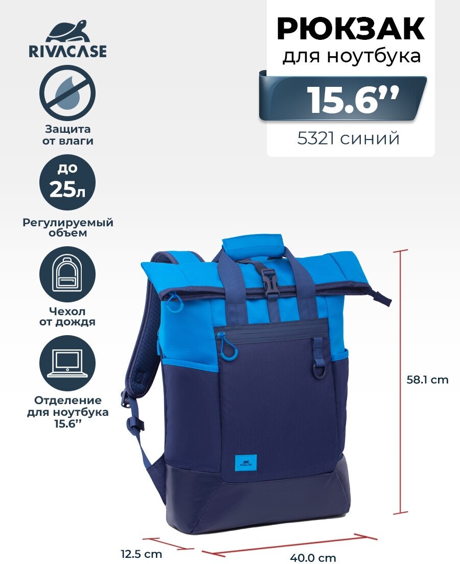 Рюкзак для ноутбука 15.6" Rivacase 5321 blue, 25 л, водоотталкивающая ткань