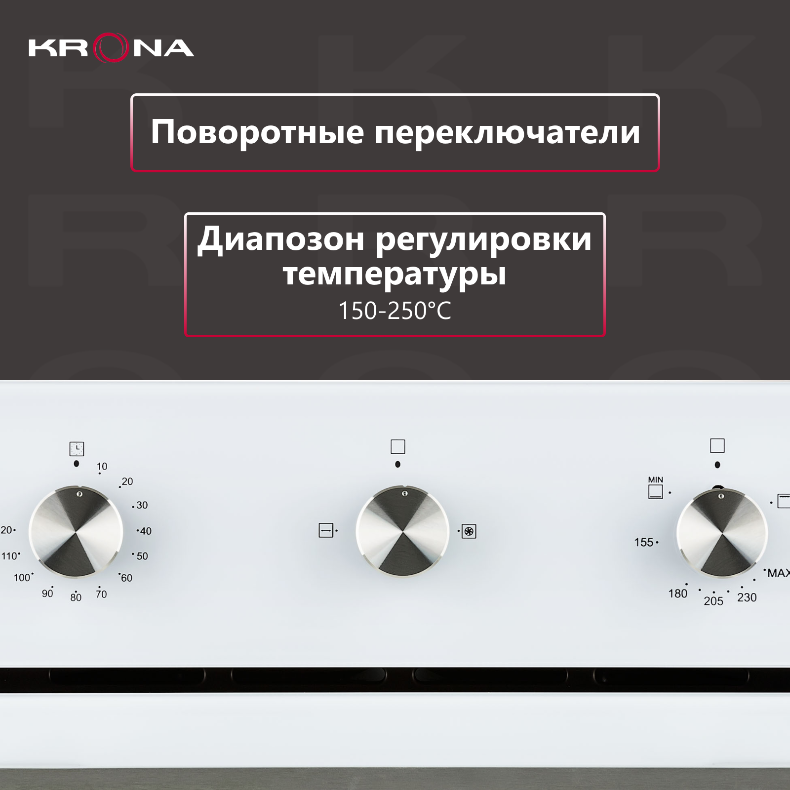 Духовой шкаф Krona Stretto 45 BL Ширина, см:45, Общий объем, л:48, Управление:поворотные пер .