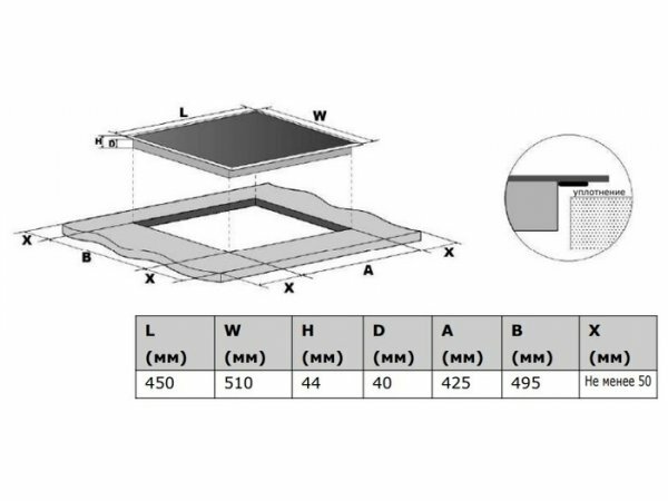 | Глубина для встраивания | 49 см |