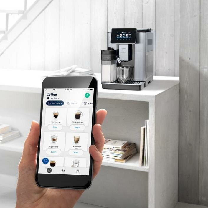 Кофемашина Delonghi PrimaDonna Soul ECAM610.75.MB с автоматическим капучинатором, функциями приготовления 2 порций и управления с телефона, зерновая, 13 степеней помола, металлик/черная