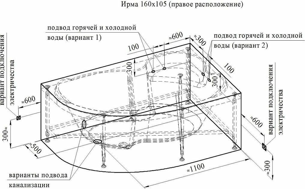 СохранитьАкриловая ванна Radomir Vannesa Ирма 160x105 правая, с каркасом (2-01-0-2-1-229) интересное: