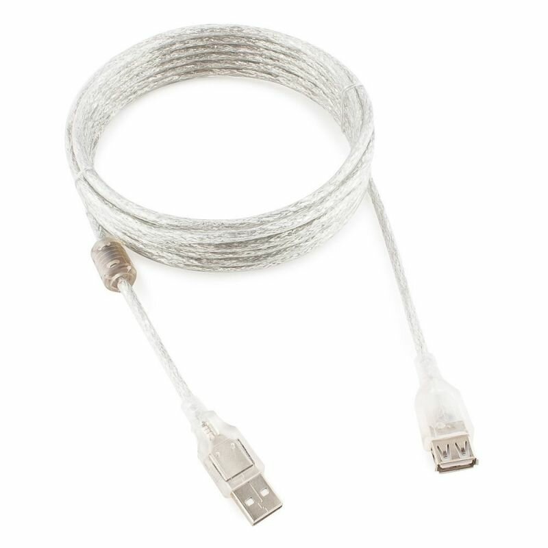 Gembird Cablexpert Кабель удлинитель USB2.0 Pro, AM AF, 1,8м, экран, 2 феррит.кольца, прозрачный CCF-USB2-AMAF-TR-6