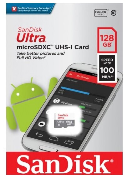Карта памяти microSD 128 ГБ SanDisk Class 10 Ultra