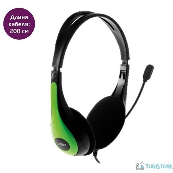 Гарнитура CBR CHP 353M черный-зеленый, проводная, микрофон, регулировка оголовья, длина каб, 2м .