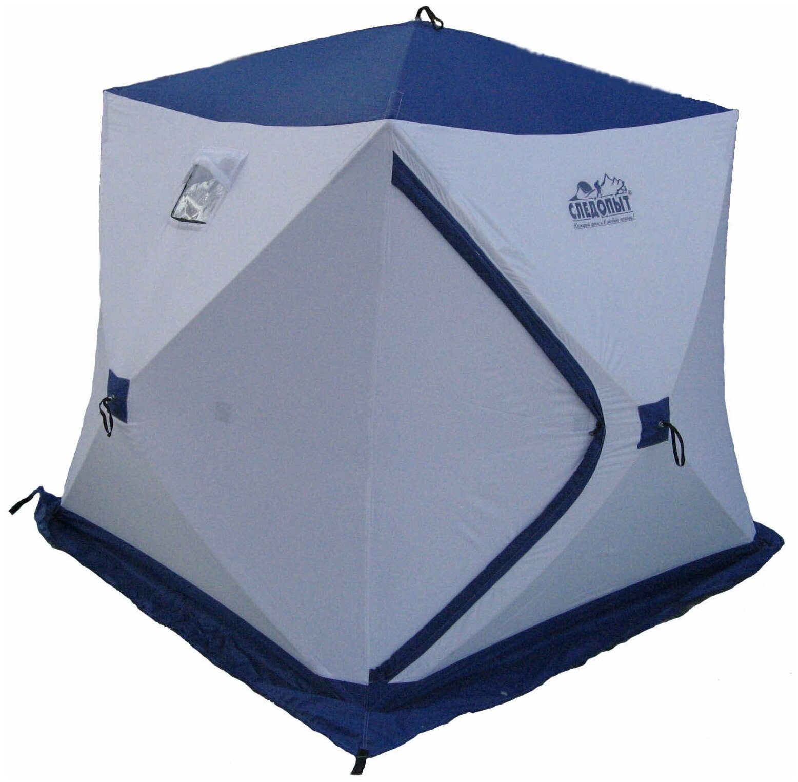 Палатка зимняя куб следопыт Эконом, 3-х местная, 3 слоя, цв. бело-синий
