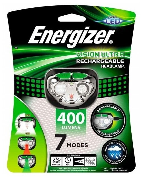 Фонарь налобный аккумуляторный Energizer Rechargeable Headlight 400 lm интересное: