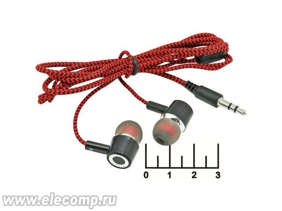 Наушники внутриканальные Perfeo MILD черные черно-красный тканевый провод